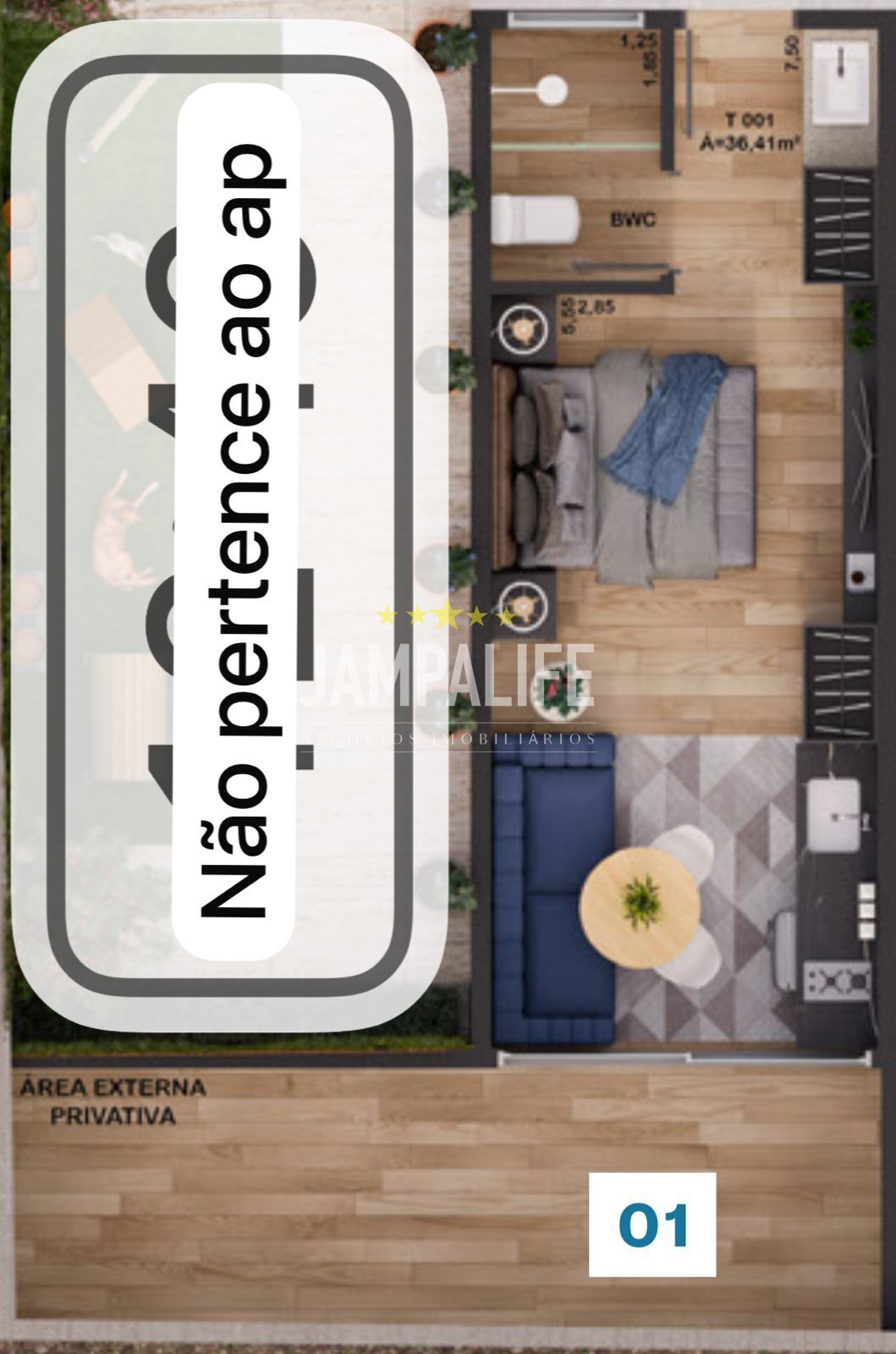 • Área externa privativa, ideal para varanda, espaço de descanso ou receber visitas