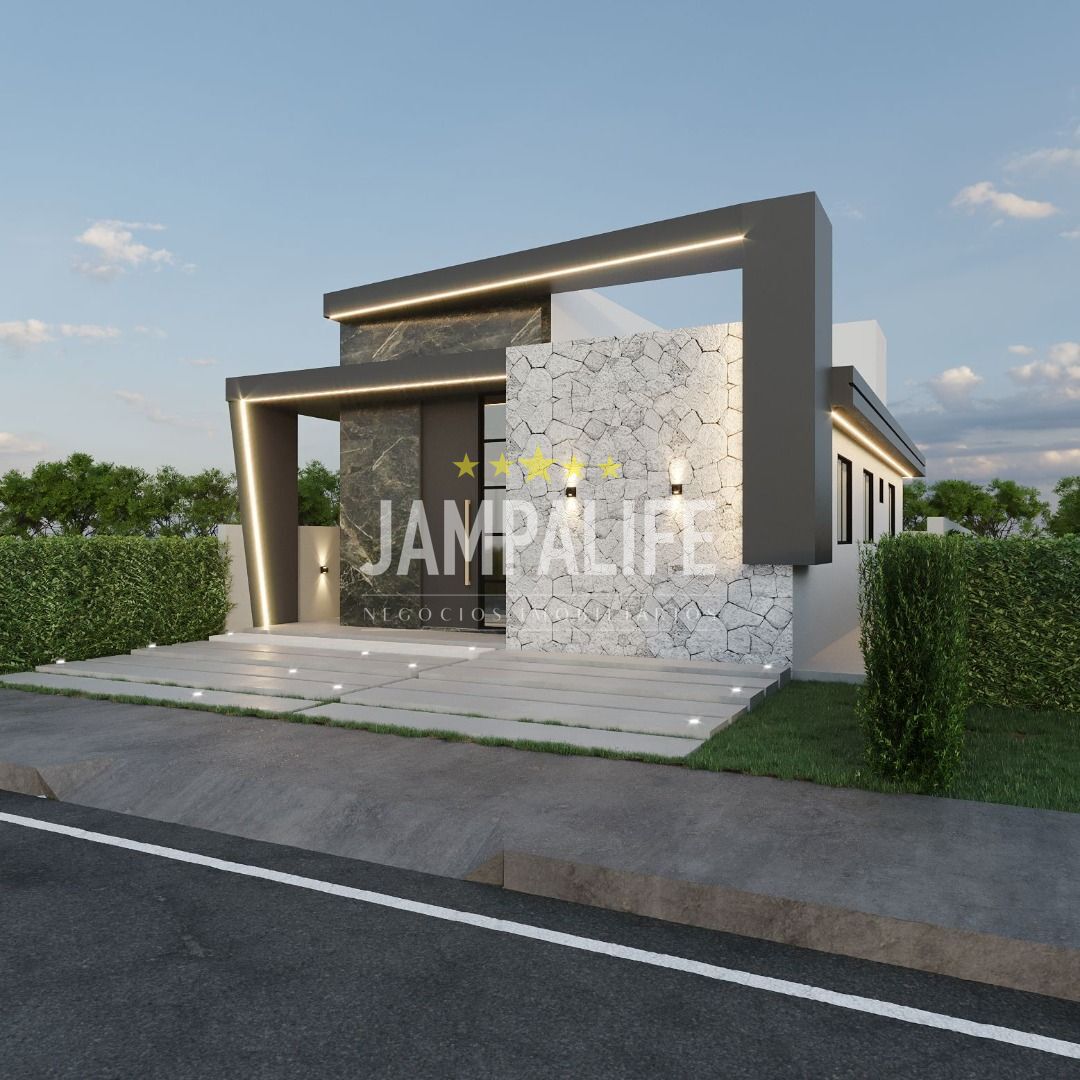 A casa medindo 103 m² de área construída e 10x20 de área total do terreno, frente sul, possui sala de estar integrada com cozinha americana, 03 quartos sendo 01 suite master com closet, wc social área de serviço e 02 vagas de garagem.