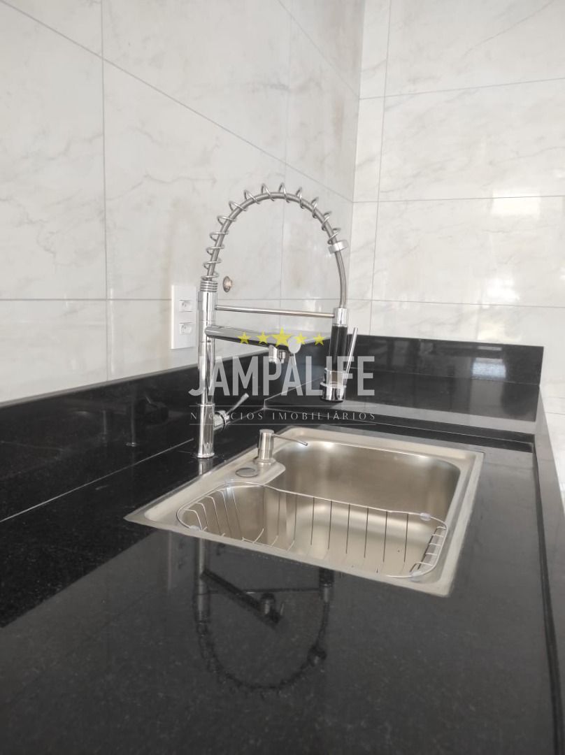 Contendo: Balcão em granito preto São Marcos e tanque em inox 304, bancadas e nichos em mármore e cuba de apoio de louça escupida na pedra, ilha em granito preto São Marcos, balcão preto São Marcos com a churrasqueira revestida emporcelanato, casa de gás, casa de máquina, janelas com vidro fumê com perfil de alumínio preto, infraestrutura pronta para ar-condicionado e laje em toda a casa.
