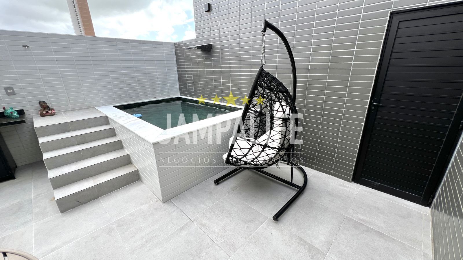Acesso privativo a cobertura que contém espaço gourmet e piscina privativa.